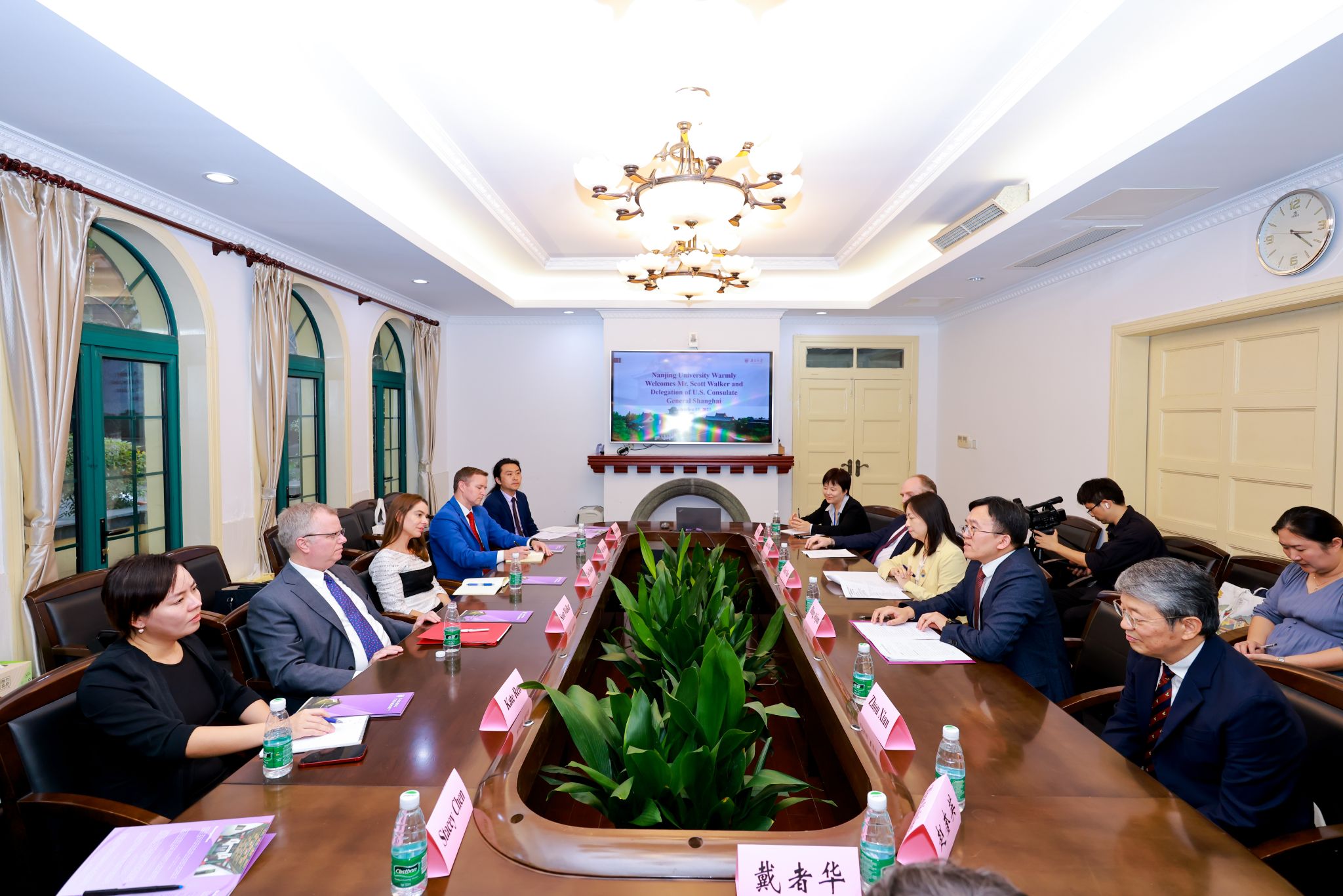 During his visit, Consul General Scott Walker also toured the Pearl S. Buck Memorial Hall at NJU, attended the open ceremony of the “Richard Brettell’s Memorial Reading Room” at the School of Arts, and joined discussions with faculty and students at the Hopkins-Nanjing Center.